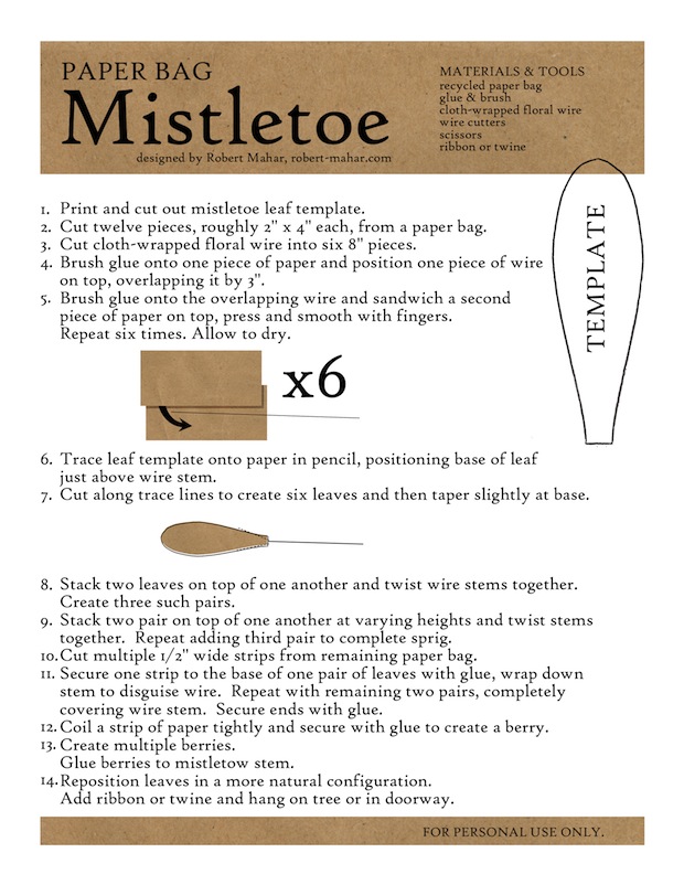Crafty folks know that decorating with whatever you've got around the house is easy, inexpensive -- and super-fun. For this holiday gift, we asked Creative Live instructor and handmade hero Robert Mahar to come up with a paper craft to deck the halls, and he provided this DIY mistletoe, made from a paper bag.