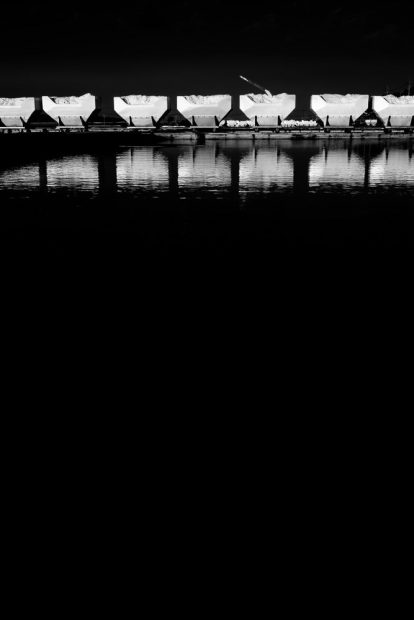 Evenly spaced, identical (or very similar) objects can be arranged to create repetitive patterns in your photographs. Things like fence-posts, the lines of a pedestrian crossing, an orchard of trees. Anything that can be arranged into a repeating pattern can bring a great intensity to a photograph. Depending on the subject matter, it may be calming, like a row of pillars on a building, or alarming, like endless rows of soldiers marching in time. Either way, breaking that pattern can be equally as powerful as establishing it. Looking at the photograph below, you will see that there are several carts of salt lined up along a track. However, most likely, the first thing your eye locks onto and stays on will be the spade sticking out of one of them. This is the element that breaks the repetition and jars you back into thinking about the image. Try to find patterns and then find ways to break them. This contrast can arrest your viewer.