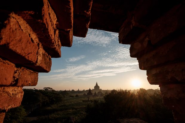 I mentioned at the beginning of this article that the two-dimensional nature of photographs is important when considering our compositions. One technique for adding depth to our images is layering things over the top of other things. Simply put, you can cover part of your frame with something closer to the camera in order to give the illusion of depth. You can use the leaves of a tree to frame a couple in the park, empty beer glasses on a bar while the bartender pours fresh ones in the background, or an audience listening to a speaker on stage at a corporate event can make a good frame that doesn’t simply show the speaker out of context. All of these things not only fill your frame with interesting elements, they further the story you’re trying to tell. In the case of the frame below, I don’t want you to simply see that there is one temple out on this plane, I want you to see that there are others and that it is a huge expanse. By using a wide-angle lens and including the foreground, I have achieved all three of those things but am still pointing you to the beautiful structure in the background.In Conclusion