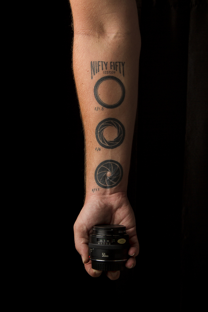Perry Wilson loves his 50mm lens so much, he got a tattoo of it.