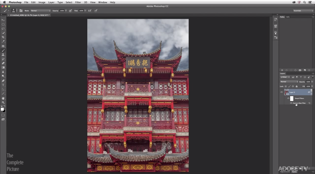 After hitting OK, Photoshop will then load the image with the Camera Raw adjustments as a smart filter which makes all the changes non-destructive to the original image. And that’s really the beauty of it. Now, if you need to go back and make additional changes later on, all you have to do is double-click the Camera Raw filter and take advantage of the bevy of tools available to you.
