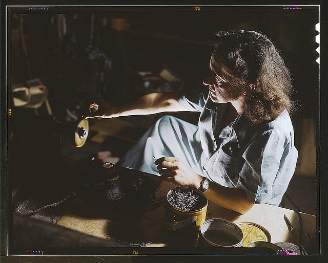 Factory work wasn't just a way to serve the country at home; it was also a financial necessity for many of the women who took on these jobs. The woman featured in this photo was "formerly a sculptress and designer of tiles," writes the Library of Congress.