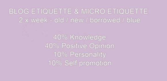 Her approach to blogging? Think of it like preparations for a wedding. "I always do old, new, borrowed, blue," she explains. Here's what that means: