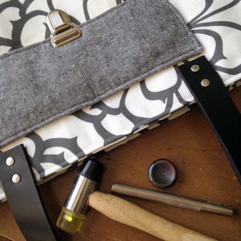 Of course, you’ll also need a bag, leather straps and rivets. (You can learn how to make the bag in my Build Your Own Tote class.)