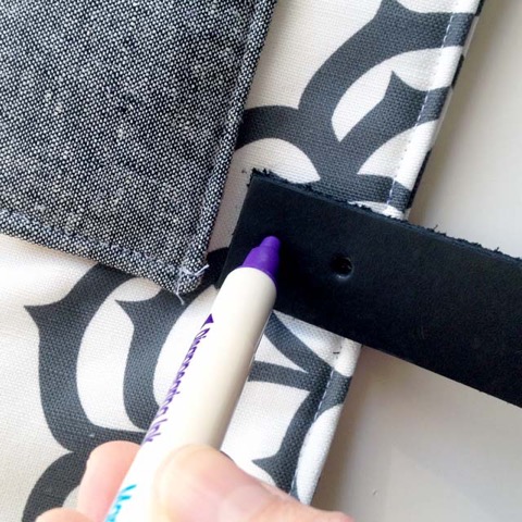 Place your handle back onto the bag and mark the placement with a marker through the holes you just punched.