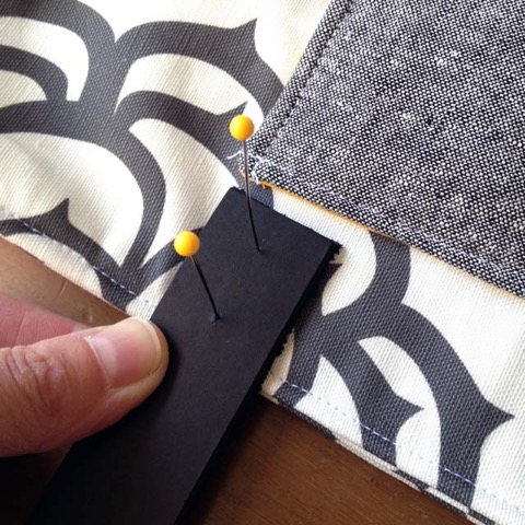 Decide on the placement of your handle. I aligned mine with the edge of the front cargo pocket on the medium tote from my Build Your Own Tote: Custom Exteriors Class.