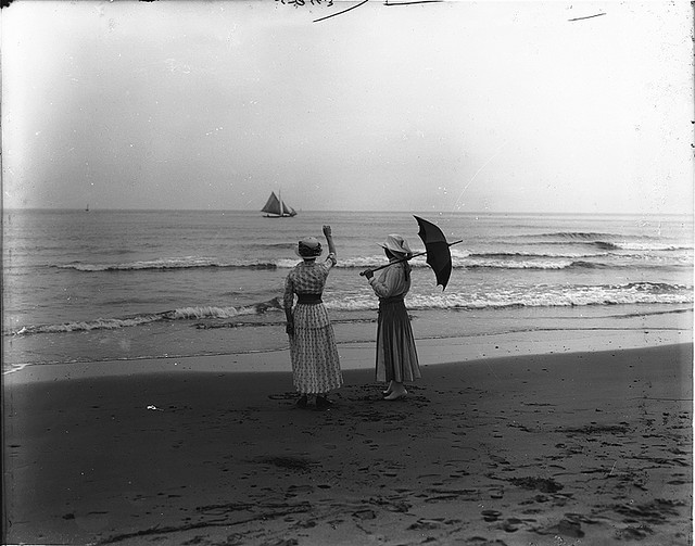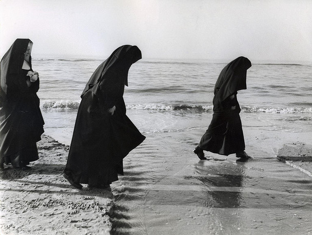 Even nuns enjoy the shore, it seems. "Wading nuns on the beach near Zandvoort, Holland," comes from