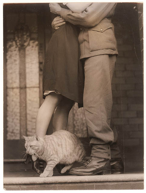 Bobble the cat photobombed a special moment between a soldier and his lady-friend. Photographer Sam Hood didn't seem to mind too much, though. He made a lot of pictures featuring people and animals.