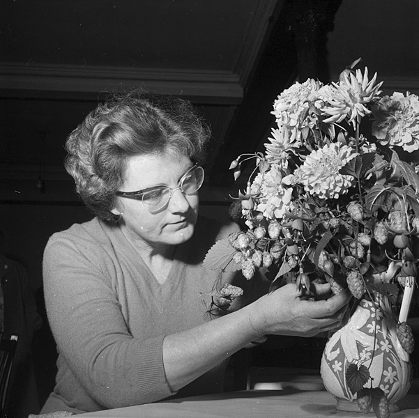 Floral design is another legacy craft. This photo is from The Caernarfonshire Federation of Women's Institutes flower arranging competition in 1959. The photographer is Geoff Charles (1909-2002). Image via the National Library of Wales.