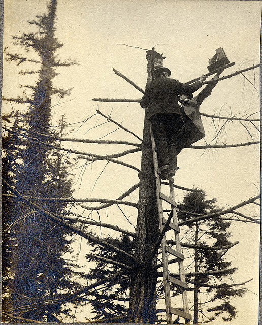 Sometimes, photographers had to meet their subjects on their level, as in this picture from Oregon State University of photography William L. Finley climbing to get a shot of a bird for his 1908 book, "American Birds".
