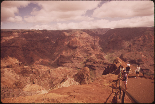 In addition to capturing the beauty of nature, outdoor photography has traditionally been practiced for another purpose: Conservation. This image was commissioned by the EPA in 1973 as a way of documenting the various natural landscapes of the United States in the hope of preserving them. The photo shows tourists at the Waimea Canyon in Hawaii.