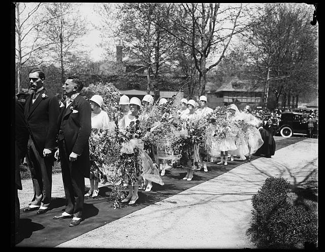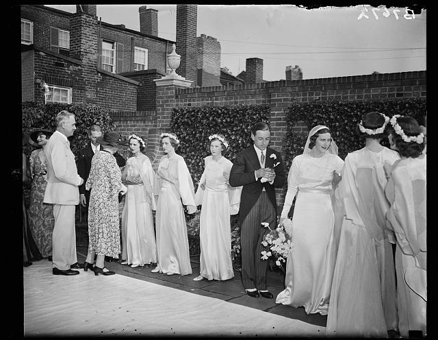 the Library of Congress contains tens of thousands of glass negatives, many of which include portraits of notable people. It also includes a LOT of weddings, like the above three. Interestingly, H&E seemed to spend more time shooting on-location than other photography outlets, which suggests that most of the subjects of the photos — which are presented by the LOC with next to no detail or description — were probably high-profile individuals or couples. The size of the wedding party in the third photo would suggest the same.