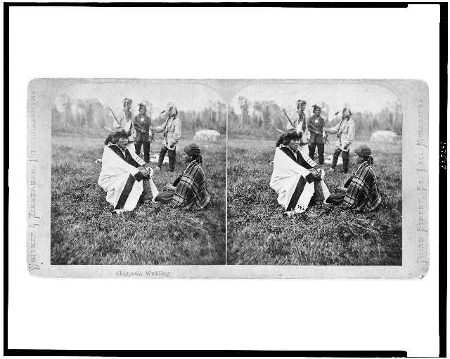 And now, for something completely different, here's an image of a Chippewa wedding ceremony, circa the late 1870s. Courtesy of the Whitney & Zimmerman gallery, this image was taken by Charles Zimmerman, a prominent Minnesota photographers of the era. The image comes to us